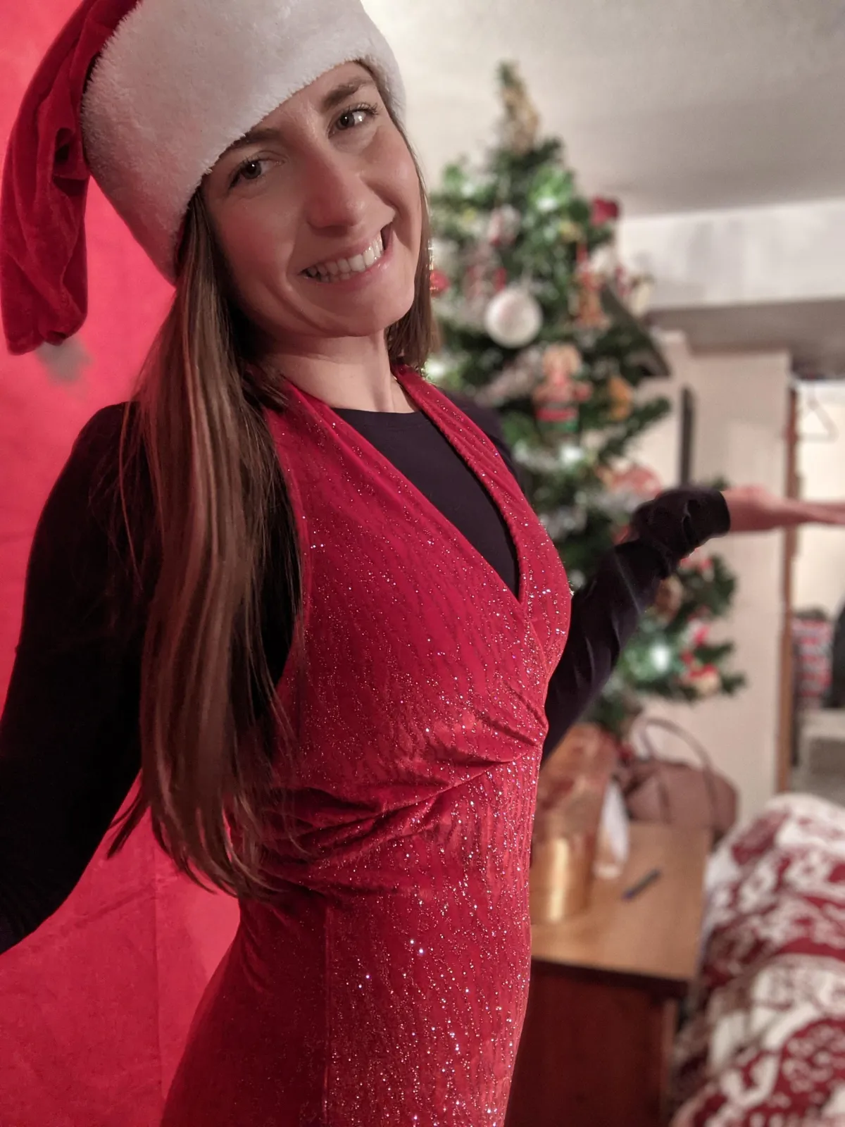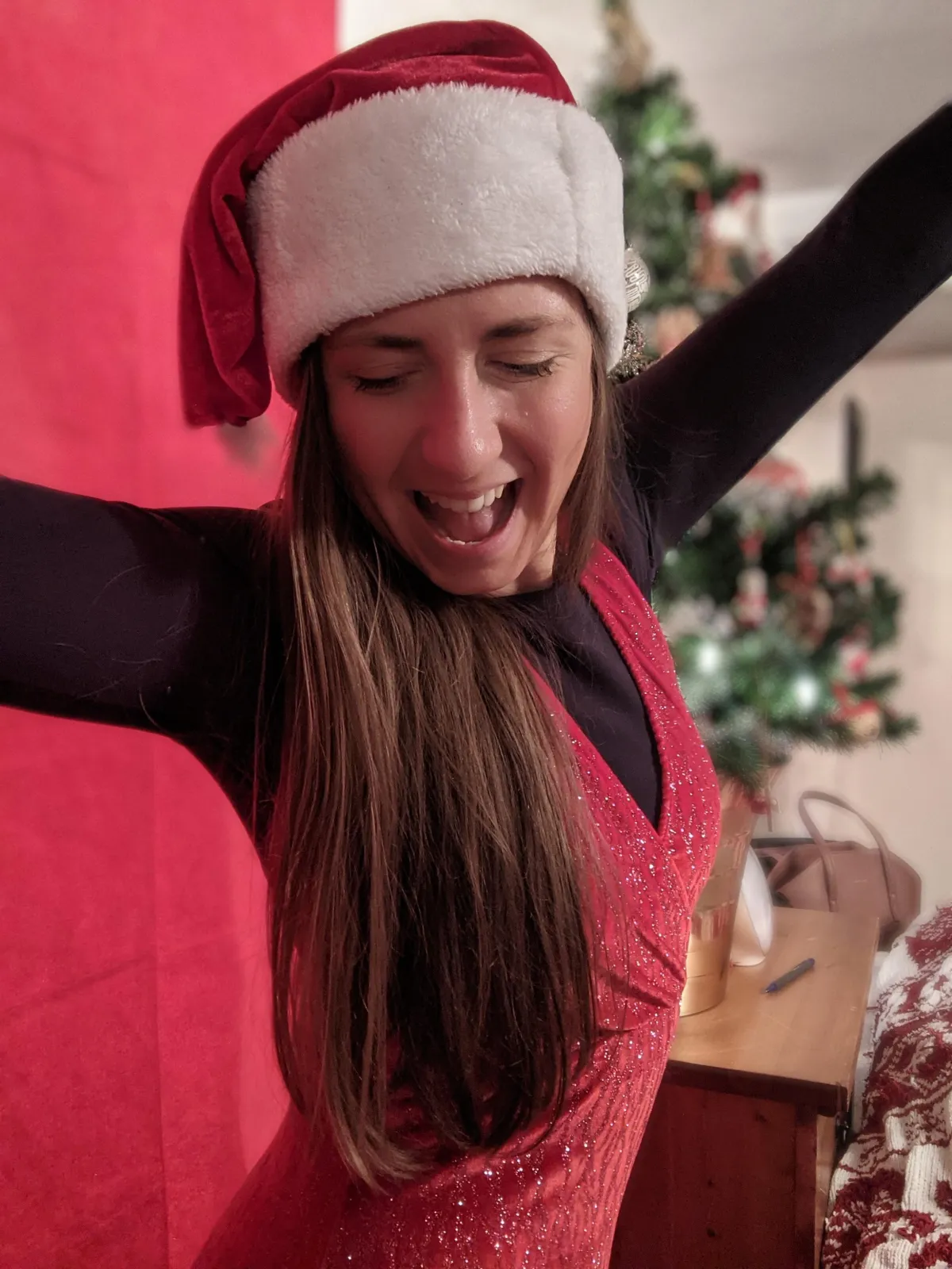 We will have our last live class of the challenge on Friday, December 19th, and I always give our community the option to wear their fun, festive gear/accessories (like the sparkly onesie and Santa hat in the photos below) for our final class together! We've had over 100 people take on the challenge over the past 5 years, and it is always an absolute blast.